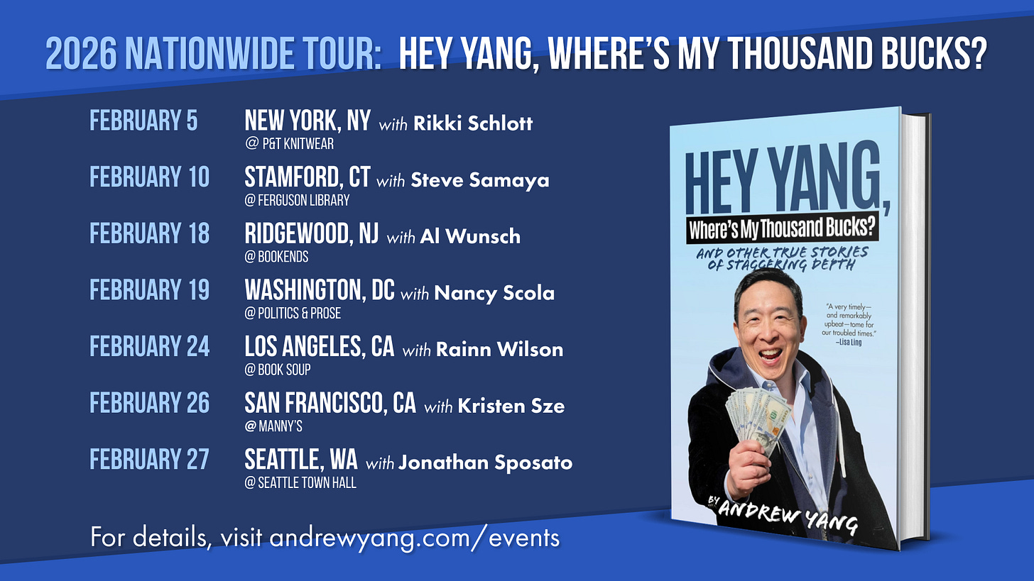 The book is now available for pre-sale; use code “UBIUBI” for 25% off. Book tour dates in New York, New Jersey, Connecticut, DC, LA, SF, and Seattle can be found here. Go to noblemobile.com/yang for 3 months off your wireless bill, the best deal around. I’m also celebrating my bday on Jan. 15th at our Offline Party in NYC so come find me there!