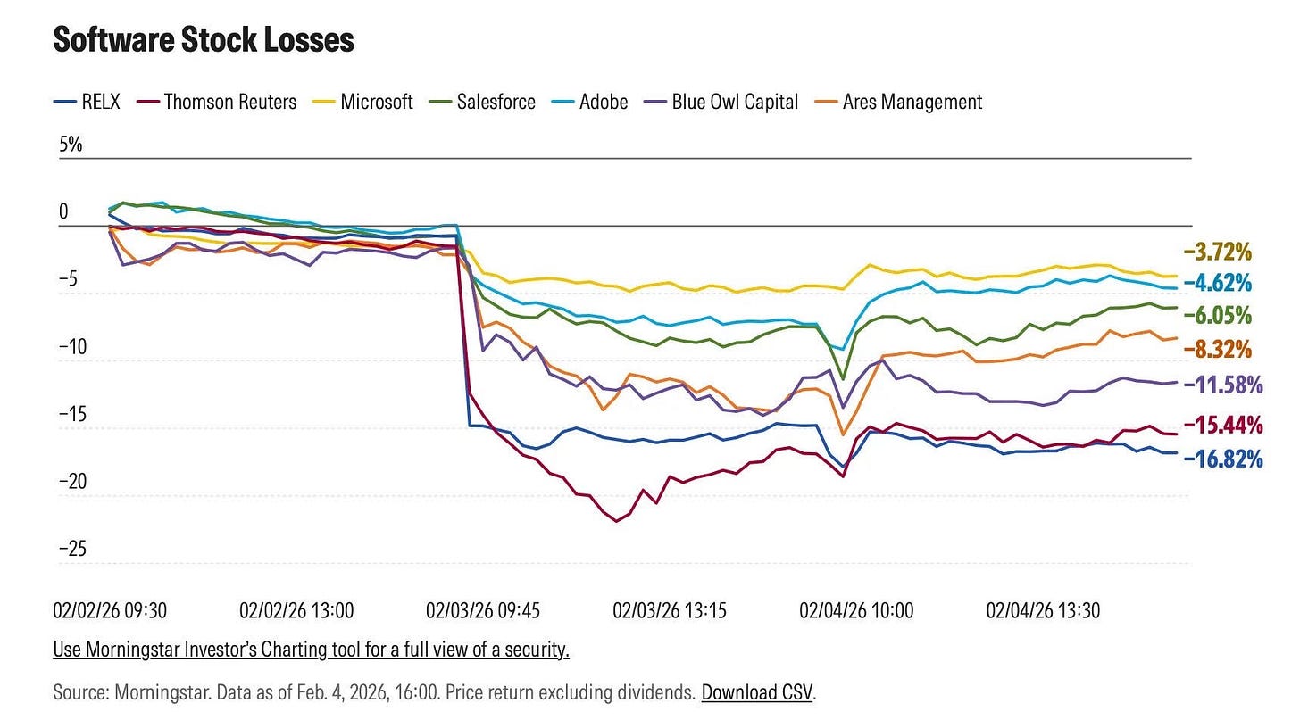 There was a freakout of epic proportions. Thomson Reuters plunged a record 15.8%. LegalZoom sank 19.7%. Even the advertising giant WPP shed 15%. The software sector collapsed to the tune of $285 billion of market capitalization evaporating in a single day.